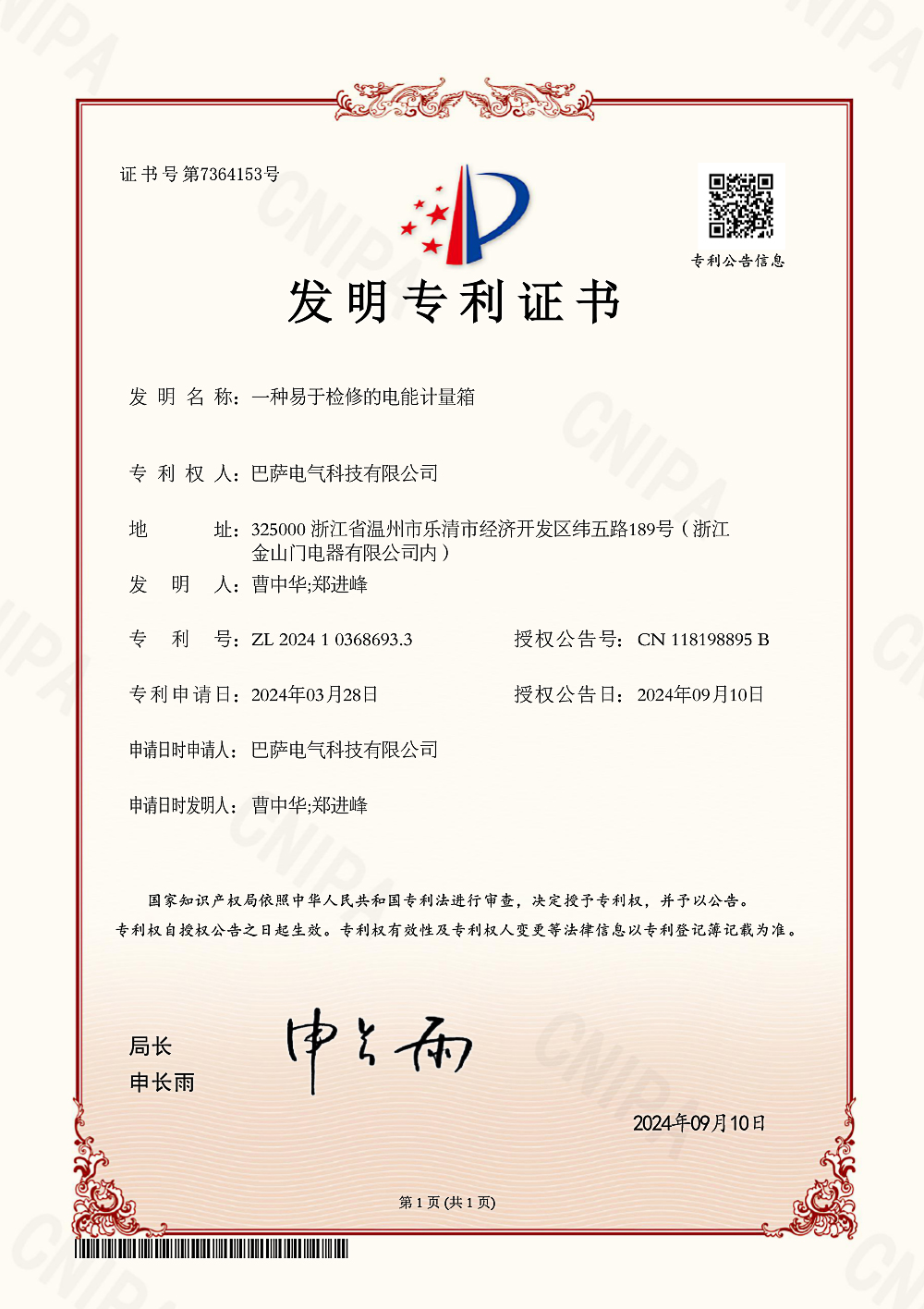一种易于检修的电能计量箱