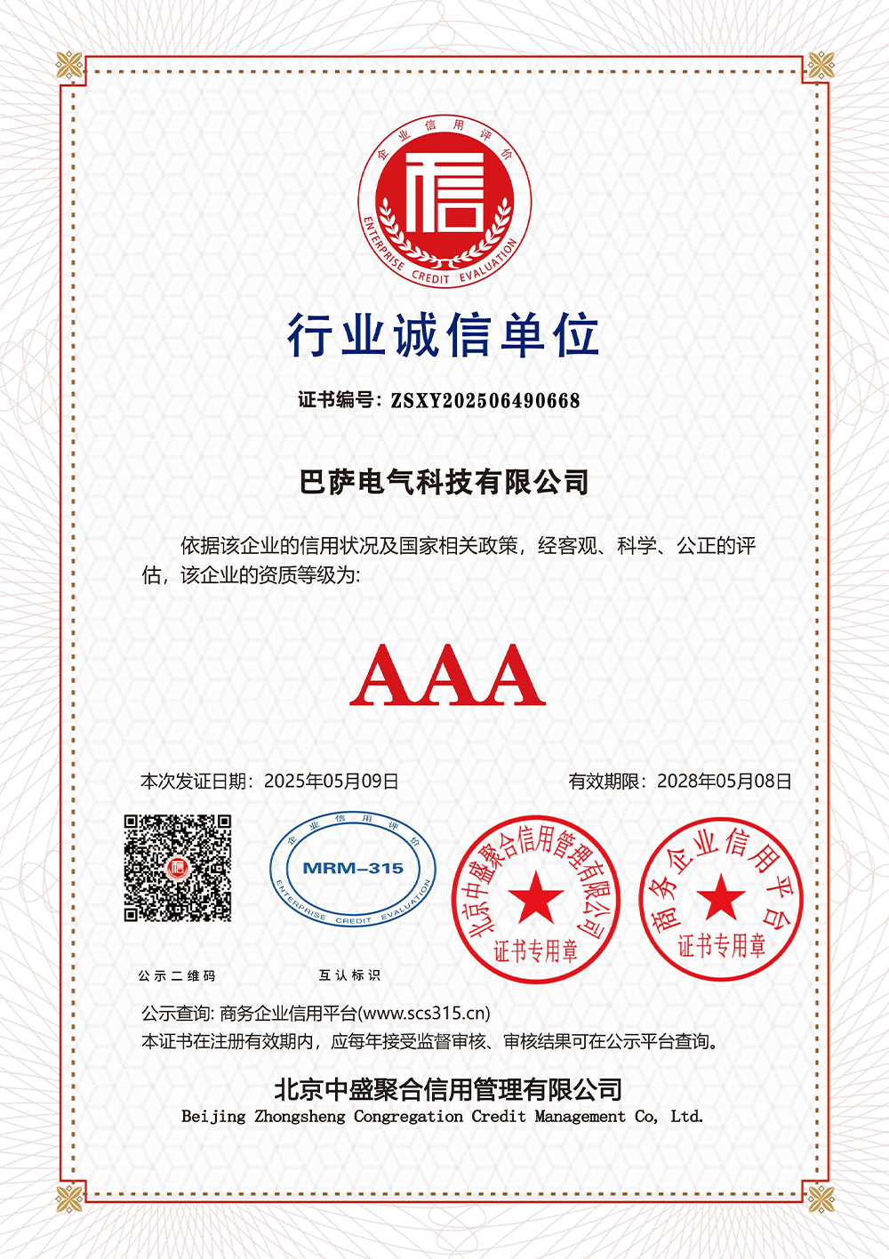 行业诚信单位
